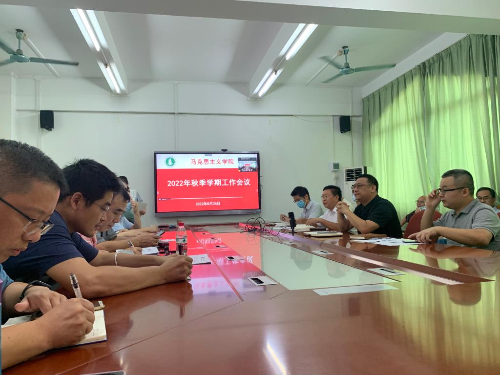 8月26日,在东校区一教1311室,马克思主义学院召开2022年秋季学期工作会议,学院党政领导班子成员及全体教职工参加了会。会议传达学习了凌靖波书记、戴青云校长在学校中层干部暑期读班上的讲话精神,并对新学期工作进行了布置。