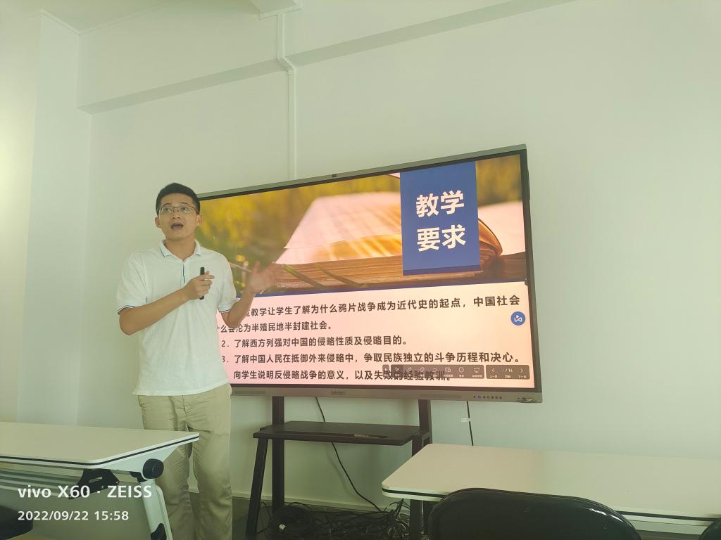 接着,曾庆环博士就教材第一章《进入近代后中华民族的磨难与抗争》进行集中说课。曾博士开展了集体研读大纲,剖析教材、分析学情、分解备课任务、阐述教学设计,结合自身的认识和理解呈现出课程的关键内容。学校督导雷扬博士、学院督导赵蕊博士作了系统点评,介绍了他们个人对章节内容的认识,讲述了课程教学中所运用的教学资源和方法,各位老师分别对此发表了自我看法,也阐述了自我在教学中的感悟和思路,相互切磋探讨,形成了统一共识。