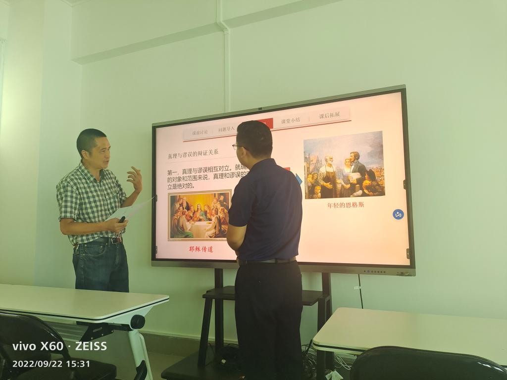 集体备课是提高备课质量的重要备课形式。2022年9月22日下午,按照学院相关教学工作统一部署,中国近现代史纲要教研室在东校区一教1312会议室(原电信学院会议室)举行集体备课。活动由教研室主任余九林主持,全体教研室成员及本学期上纲要课教师参加。