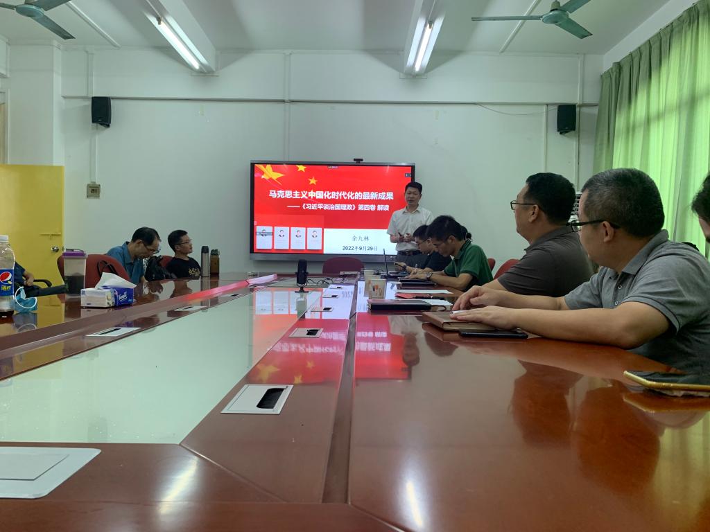 2022年9月29日下午,在东校区一教1311室,马克思主义学院召开学习贯彻《习近平谈治国理政》第四卷专题报告会,余九林博士以《马克思主义中国化时代化的最新成果—<习近平谈治国理政>(第四卷)解读》为题,作了专题报告。会议由学院党委书记房亚兵同志主持,学院全体教职工出席了会议。