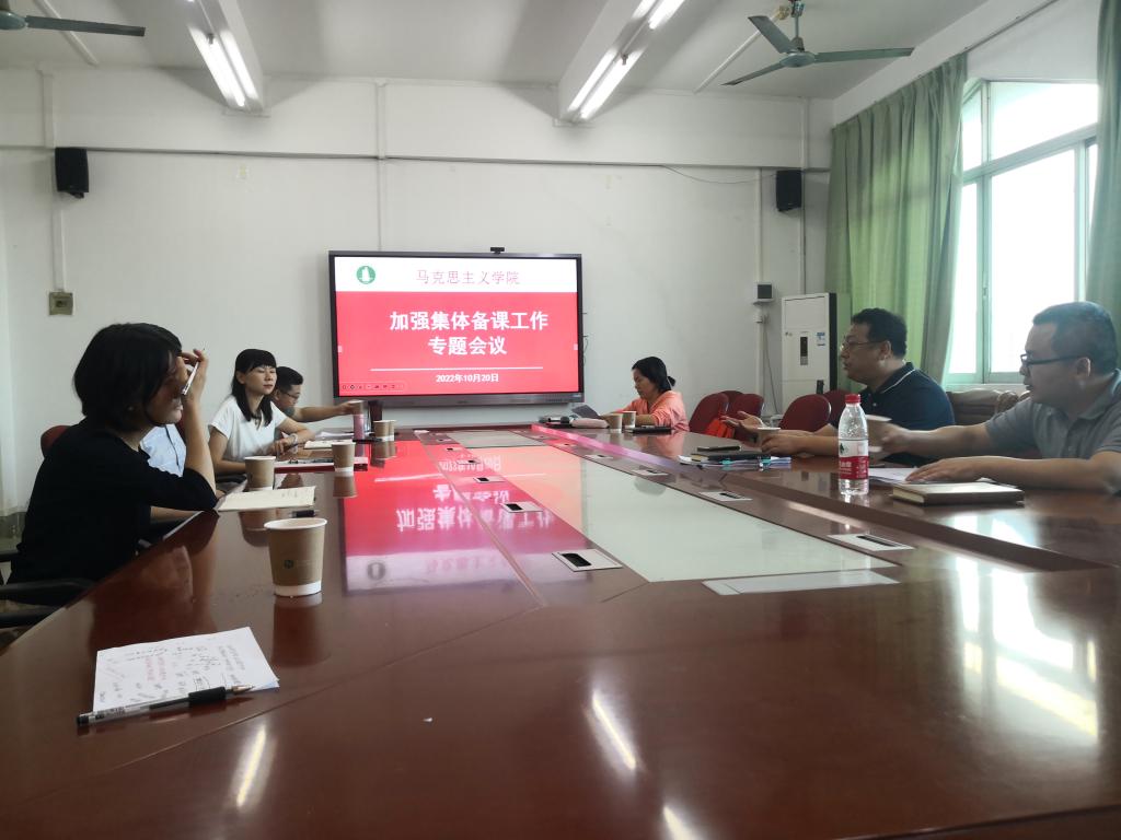 为进一步巩固集体备课制度,扎实做好我院的集体备课常态化工作,2022年10月20日下午,马克思主义学院在东校区第一教学楼1311召开集体备课工作专题会议,布置近期各教学部、各教研室的集体备课工作,并对加强集体备课活动的考勤工作达成了共识。马克思主义学院班子成员、各大教学部、教研室负责人出席了活动。