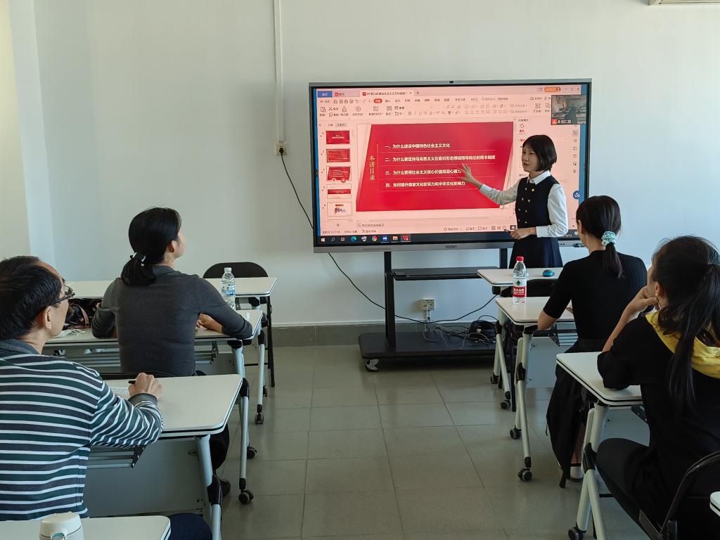 会上,窦畅宇博士以“建设社会主义文化强国”主题,从“为什么建设中国特色社会主义文化”、“为什么要坚持马克思主义在意识形态领域指导地位的根本制度”、“为什么要用社会主义核心价值观凝心聚力”和“如何提升国家文化软实力和中华文化影响力”四个方面为现场各位任课教师作了示范授课。与会教师围绕窦畅宇博士的教学示范教学展开了热烈讨论,肯定了优点,也指出了改进方向。