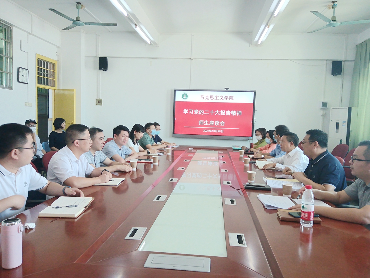 10月20日下午,马克思主义学院学习党的二十大精神师生座谈会在一教1311会议室举行,学院领导班子成员、部分师生代表参加会议。
