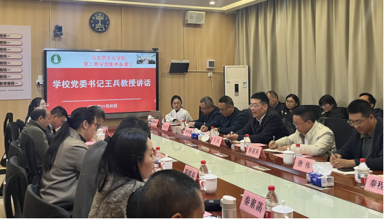 为贯彻落实《教育部办公厅关于开展2025—2026学年高校思政课课堂教学提升行动的通知》精神,切实增强我校思政课的思想理论性、亲和力和针对性,11月20日下午,学校党委书记王兵来到马克思主义学院第二教学部参加课程集体备课会。马克思主义学院领导班子成员、特邀专家、第二教学部全体教师参加此次备课活动。备课会由马克思主义学院第二教学部主任主持。