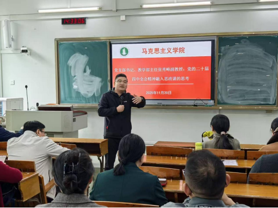 根据《广东技术师范大学党的二十届四中全会精神“六个一百”宣讲行动实施方案》和学院教学部集体备课安排,2025年11月20日下午,马克思主义学院第一教学部在一教403教室组织开展2025年秋季学期第三次集体备课会。会议第一阶段,教工第一党支部书记、学部主任张秀峰副教授以《把党的二十届四中全会精神融入思政课教学过程》为题,重点讲述党的二十届四中全会精神融入思政课的方法、策略和路径。会议第二阶段,“原理”教研室杨洁博士以《“人类社会的存在与发展”教学设计、课堂实践与问题反思》为题进行分享。杨洁博士重点分享如何设计“人类社会的存在与发展”专题的教学过程,如何通过新颖案例和形式提高学生的抬头率。“德法”教研室缑一鸣博士以《生成式人工智能与思政课教学》为题进行分享。缑一鸣博士从缘起、机遇、挑战等方面重点分享生成式人工智能的发展及其在教学中的运用现状问题。参会老师围绕相关内容进行了探讨,分享了经验。会议由第一教学部副主任金素端教授主持。