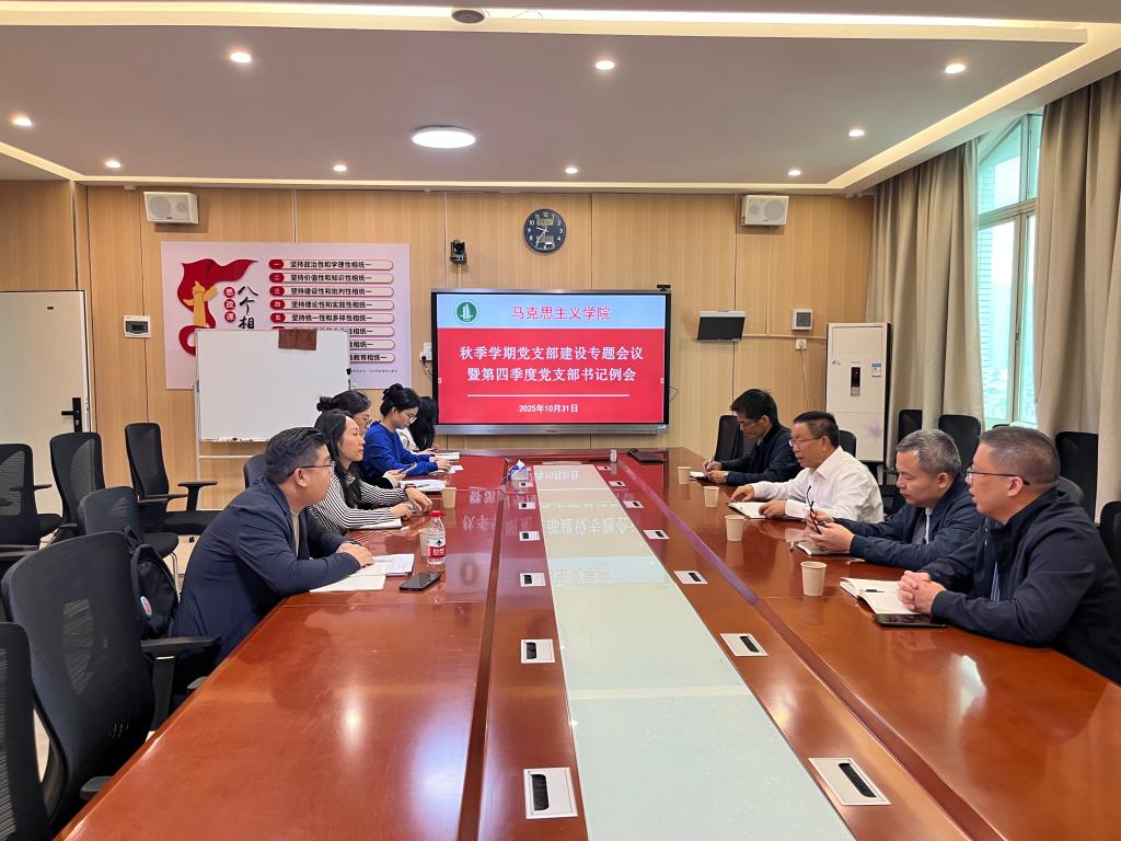 10月31日,在东校区第一教学楼1311室,马克思主义学院召开2025年秋季学期党支部建设专题会议暨第四季度党支部书记例会。会议由学院党委书记房亚兵同志主持。学院党委委员、党支部书记和党政办公室工作人员出席了会议。