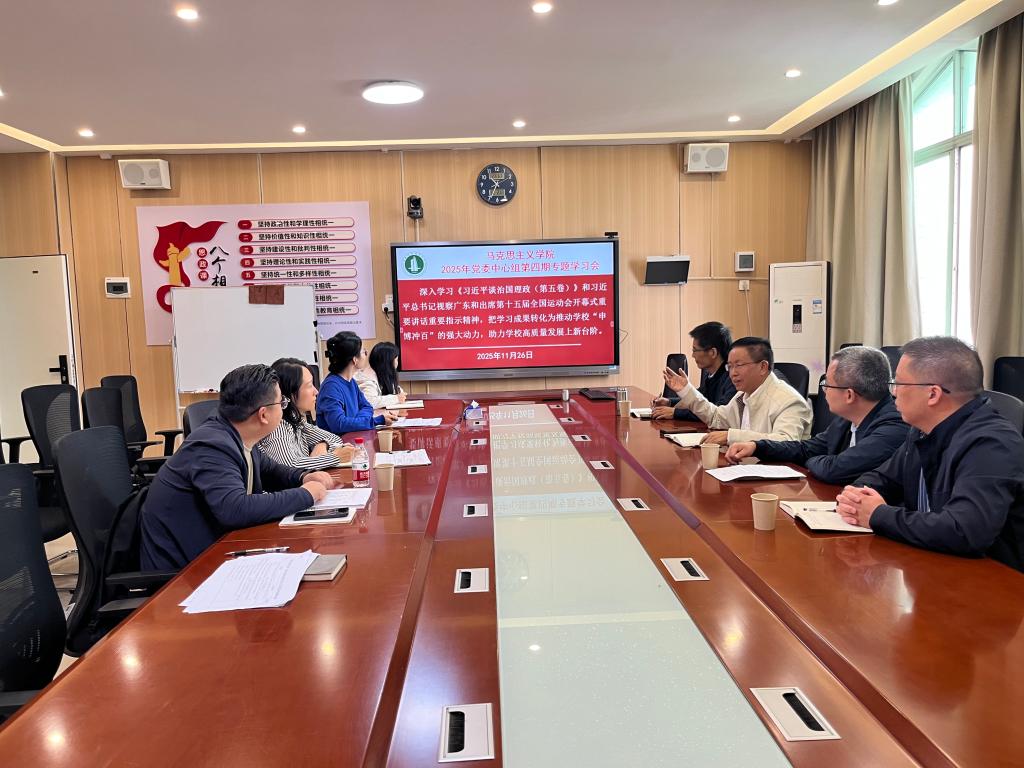 11月26日,马克思主义学院在东校区一教1311室,召开2025年党委理论学习中心组第四期专题学习会。会议由学院党委书记房亚兵同志主持。学院党委委员、党支部书记和党政办公室工作人员出席了会议。