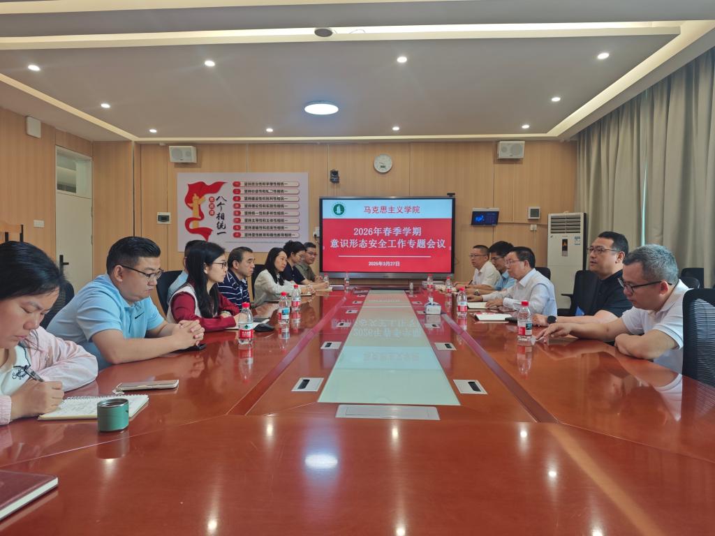 会议主要内容:一是学习《习近平谈治国理政》第五卷关于“以新安全格局保障新发展格局”等重要精神,研究贯彻落实措施;二是总结2025年马克思主义学院意识形态安全工作;三是研究如何将意识形态安全纳入集体备课内容,布置相关工作;四是研究布置马克思主义学院2026年意识形态安全重点工作