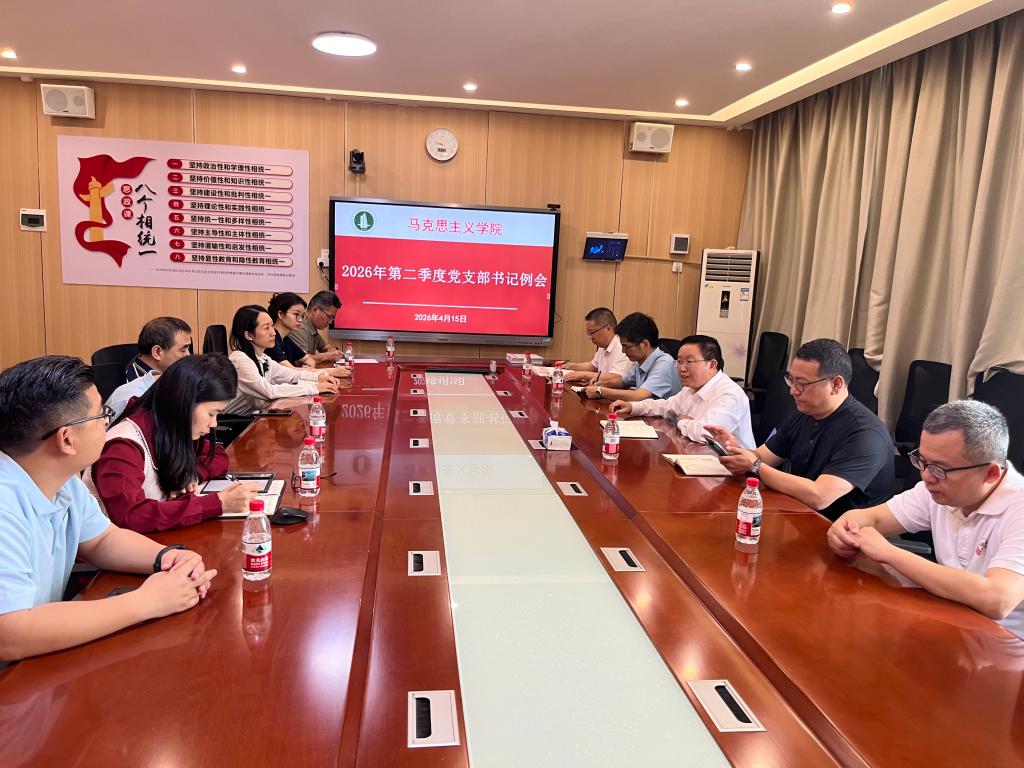 4月15日,在东校区第一教学楼1311室,马克思主义学院召开2026年第二季度党支部书记例会。会议由学院党委书记房亚兵同志主持。学院党委委员、党支部书记和党政办公室主任出席了会议。